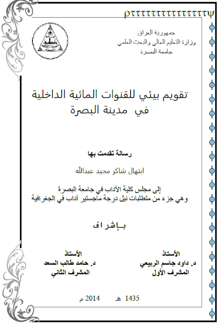 ماجستير تقويم بيئي للقنوات المائية الداخلية في مدينة البصرة